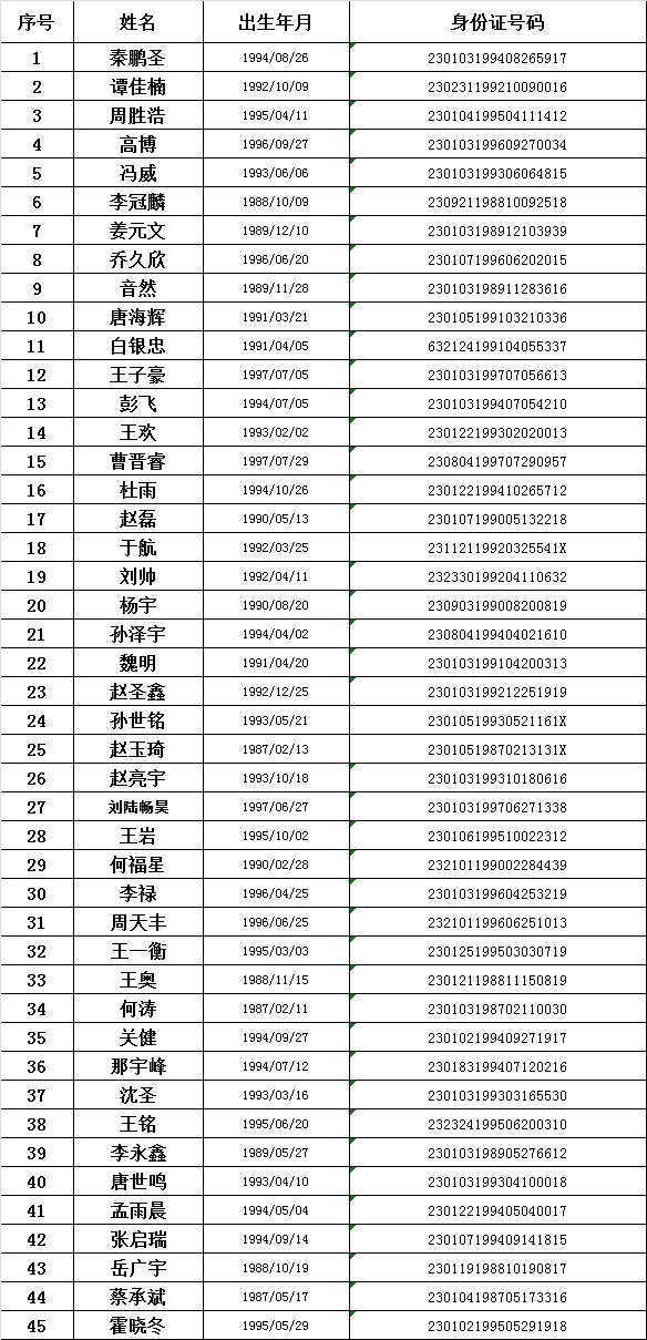 2017年哈尔滨市公安局南岗分局公开招聘公安辅警考试被录用人员名单